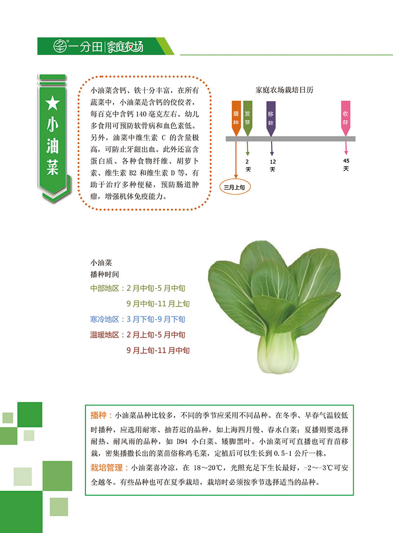 介紹小油菜的家庭種植方法,小油菜含鈣、鐵十分豐富,在所有蔬菜中,小油菜是含鈣的佼佼者,每百克中含鈣140毫克左右。