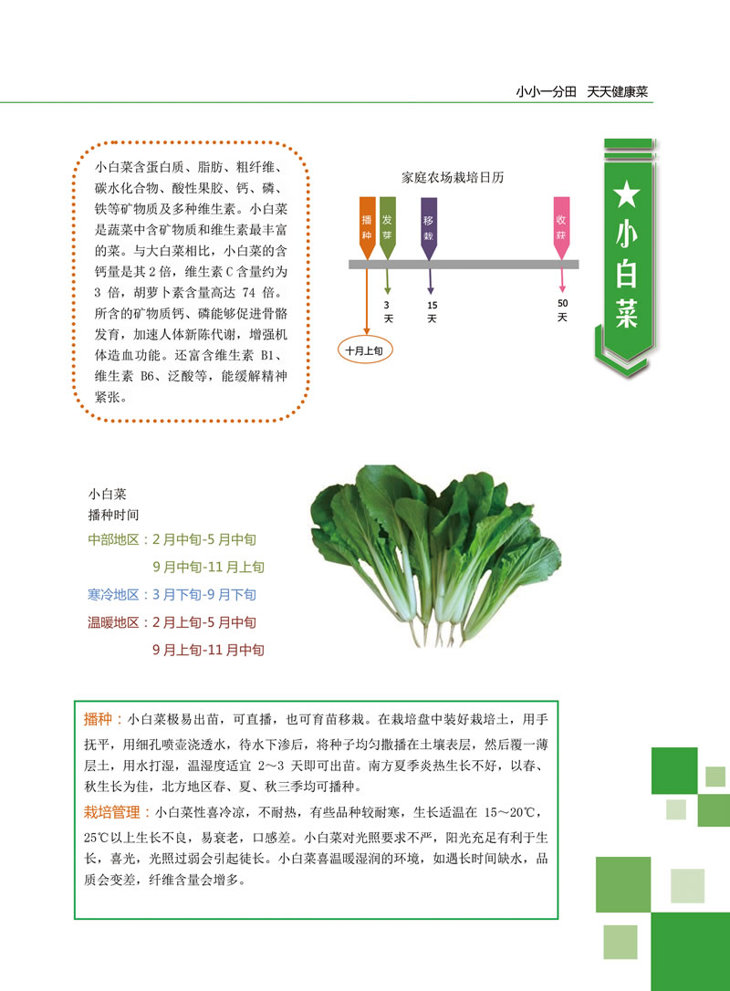 小白菜的家庭種植方法講解,小白菜含蛋白質、脂肪、粗纖維、碳水化合物、酸性果膠、鈣、磷、鐵等礦物質及多種維生素。